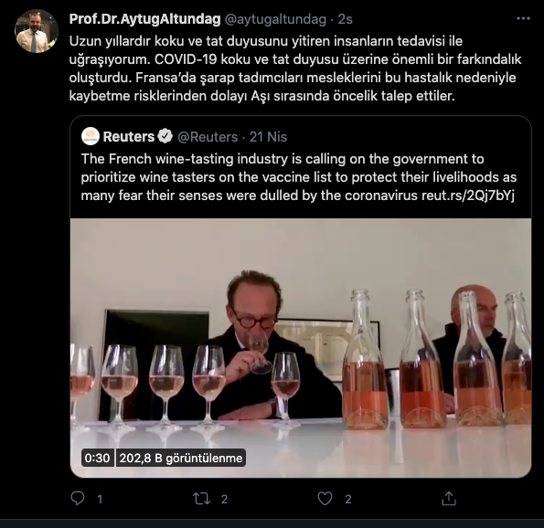 Uzun yıllardır koku ve tat duyusunu yitiren insanların tedavisi ile uğraşıyorum. COVID-19 koku ve tat duyusu üzerine önemli bir farkındalık oluşturdu. Fransa’da şarap tadımcıları mesleklerini bu hastalık nedeniyle kaybetme risklerinden dolayı Aşı sırasında öncelik talep ettiler.