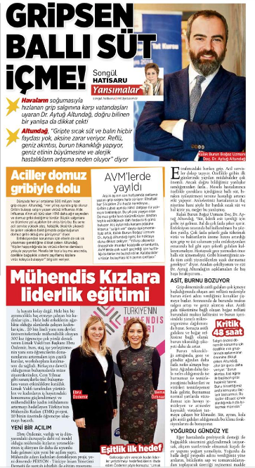 Aralık ayının son haftasında patlama yapan grip salgını hala sürüyor. Etraftaki her 5 kişiden 2’si hasta neredeyse... Gribin şubat ayında ikinci dalgayı da yapması bekleniyor. Bu yıl çok yaygın olan Domuz gribi fena süründürüyor. Baştan teşhis edildiğinde dahi tedavisi 6 günü buluyor. Kış aylarında karşımızdakine kibarca “salgın var” deyip öpüşmemeliyiz artık. Kulak Burun Boğaz Uzmanı Dr. Aytuğ Altundağ ilginç bir noktaya daha dikkat çekiyor: “Yılbaşı alışverişi öncesinde insanlar kalabalık ortamlarda, AVM’lerde çok vakit geçirdiği için hastalığı birbirlerine bulaştırdılar. Kalabalıklar virüsün bulaşması için zemin üretiyor.”